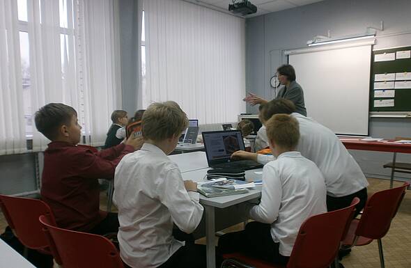 Учитель английского языка школы №29 Наталья Георгиевна Горышева пригласила коллег на открытый урок в 5 классе, на котором учителя могли наблюдать практическую реализацию мультисенсорного подхода.