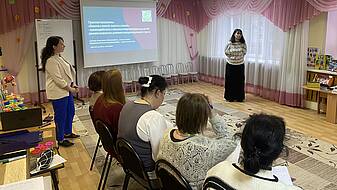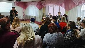 32 педагога из детских садов г. Ярославля стали участниками активностей дня – коммуникативного тренинга (ведущий Захарова Т.Н.), включились в практикум по организации работы консультационного пункта в детском саду (Ведущие Керимова Е.А., старший воспитатель, Сизова А.В., учитель-логопед «ЦРР - детский сад 72»), ознакомились и опытом работы педагога в период адаптации и детей и семей воспитанников к условиям ДОО (Овчинникова О.А., воспитатель «ЦРР - детский сад 72»).