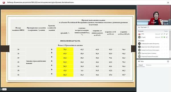 Мария Николаевна провела анализ результатов ЕГЭ-2025 по английскому языку, связав дефициты в проверявшихся умениях и навыках выпускников с методами преподавания предмета.