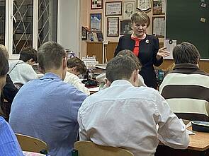 Доцент кафедры общего образования Института развития образования Наталья Владимировна Лукьянчикова, кандидат филологических наук, доцент кафедры русской литературы ЯГПУ им. К. Д. Ушинского, разобрала с обучающимися вопросы использования на уроке литературы различных приемов работы с художественным текстом. Учитель высшей квалификационной категории Галина Николаевна Уткина провела открытый урок литературы, посвященный анализу трагедии А.С. Пушкина «Моцарт и Сальери» в 9 классе.
