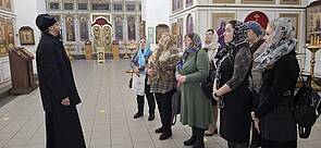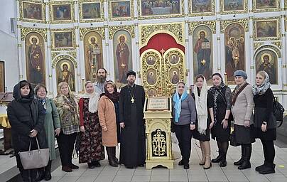 Отец Павел Рахлин объяснил учителям основные содержательные моменты предметного модуля «Основы православной культуры» курса «Основы религиозных культур и светской этики» (ОРКСЭ): «Введение. Культура и религия», «Христианская Священная история», «Церковь и богослужение», «Общественное служение христианина». Педагоги получили ответы на вопросы, касающихся библейских сюжетов, их практической значимости в жизни человека, и общественного служения христианина. Затем им провели экскурсию по Сретенскому храму, из которой они узнали об устройстве православного храма - из каких частей он состоит, утвари, а также церковных таинствах и обрядах. По отзывам участников занятия, подобные встречи очень информационные, познавательные и важные для педагогов.